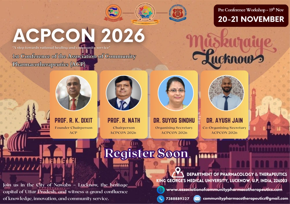 The Association of Community Pharmacotherapeutics (ACP) is an academic and service-oriented organisation affiliated with the Department of Pharmacology & Therapeutics at King George’s Medical University, Lucknow. ACP was founded with a clear philosophy: