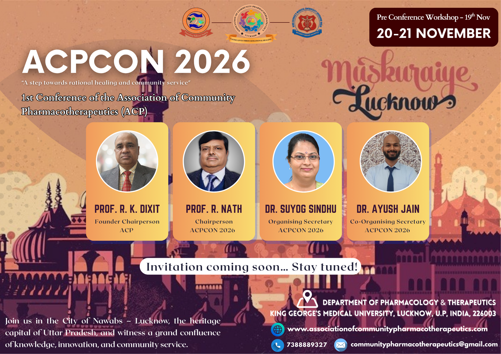 The Association of Community Pharmacotherapeutics (ACP) is an academic and service-oriented organisation affiliated with the Department of Pharmacology & Therapeutics at King George’s Medical University, Lucknow. ACP was founded with a clear philosophy: